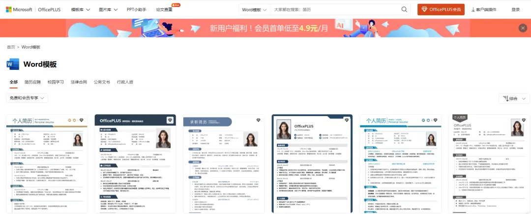 Office Plus这是微软的官方网站,在网站中搜索简历模版,然后点击word模版就能够找到简历模版,找到自己喜欢的模版就能够下载,