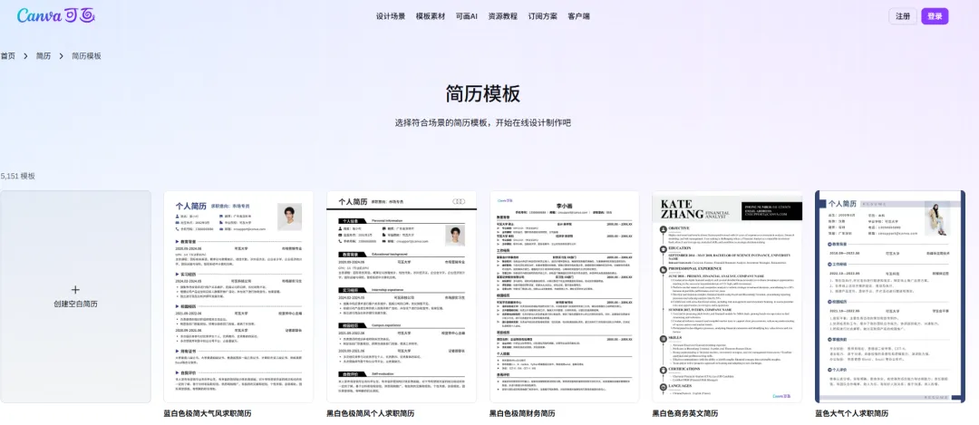 https://www.canva.cn/resumes/templates/