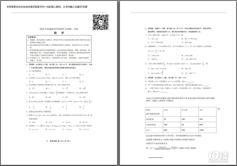 今天为大家准备的是家长上传的2025年高考全国一卷网传版数学试卷,获取试卷完整电子版pdf免费下载及参考答案分析请点击文中的小程序!