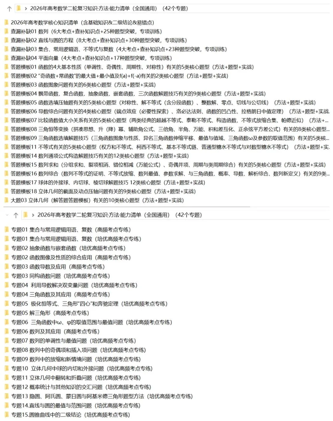>【2026年高考数学】二轮复习知识题型方法能力清单42个专题含全解全析「全国通用」(全部完整word版文档文末有)