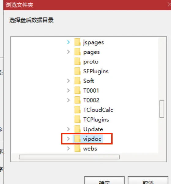 这个步骤就是让你去找到你需要共享的软件根目录里面的vipdoc(通达的数据包)!我设置的软件是尾盘软件,那这里我就去找我竞价的软件,找到它的根目录里面的vipdoc
