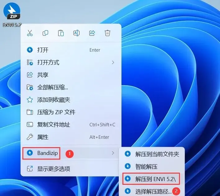 1、下载ENVI 5.2软件安装包到电脑上,右键选择【解压到ENVI 5.2\】