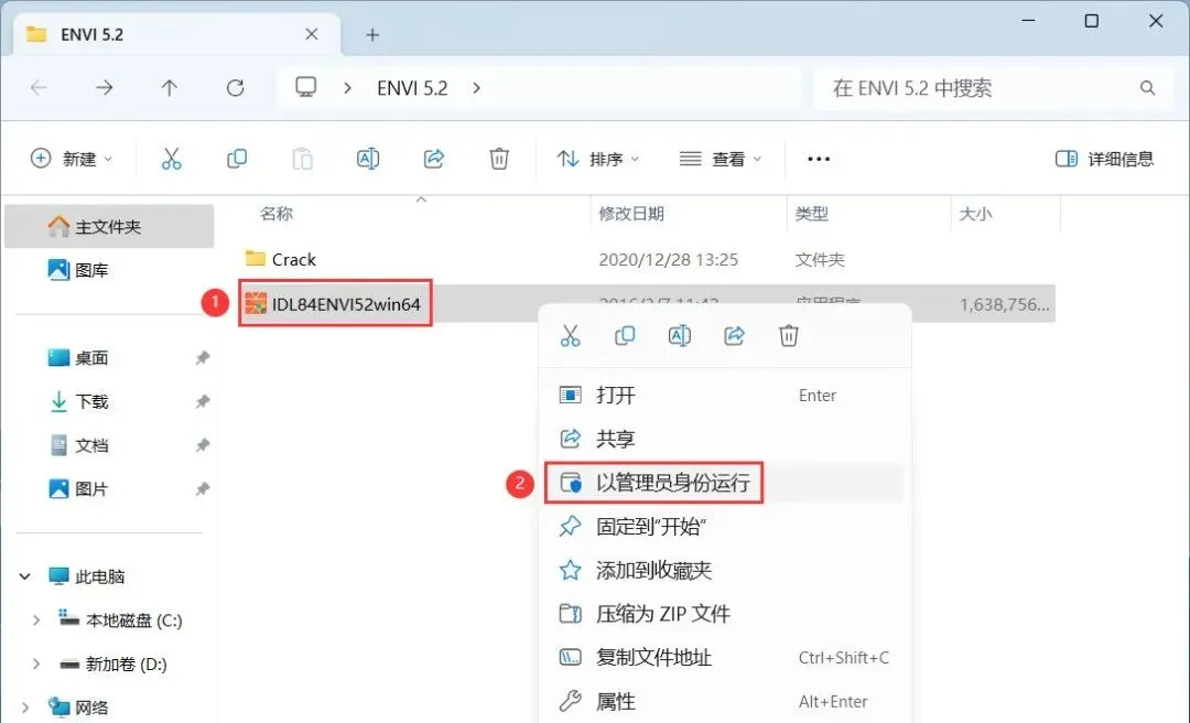 3、找到【IDL84ENVI52】应用程序,右键选择【以管理员身份运行】它