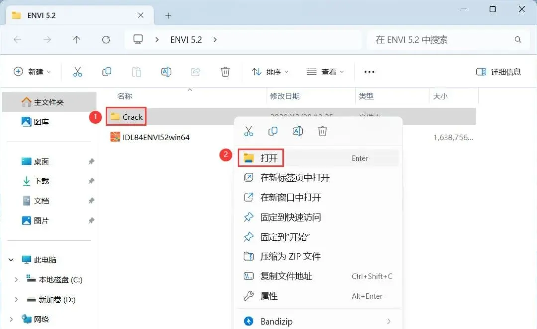13、回到ENVI 5.2文件夹,找到【Crack】文件夹,右键【打开】它