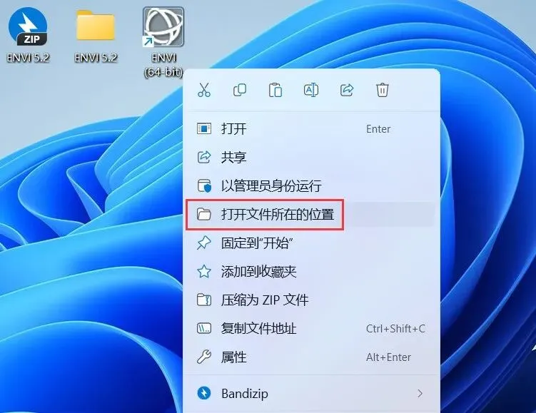 15、右键桌面上的【ENVI(64-bit)软件图标】,点击【打开文件所在的位置】
