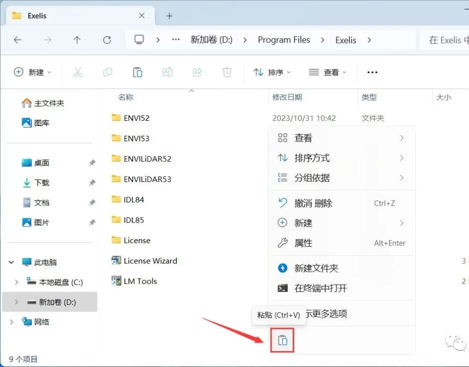 17、右键文件夹的空白处,点击【粘贴按钮】
