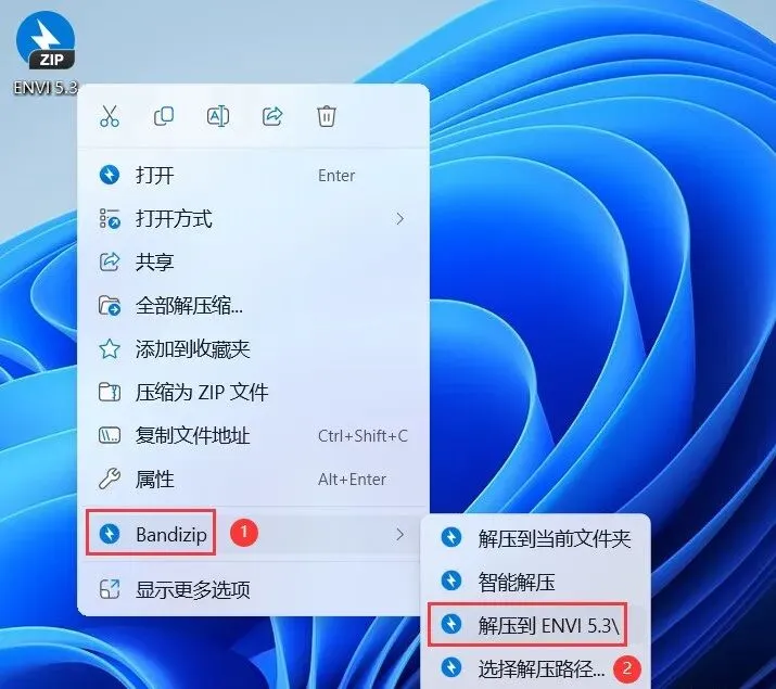 1、下载ENVI 5.3软件安装包到电脑上,右键选择【解压到ENVI 5.3\】