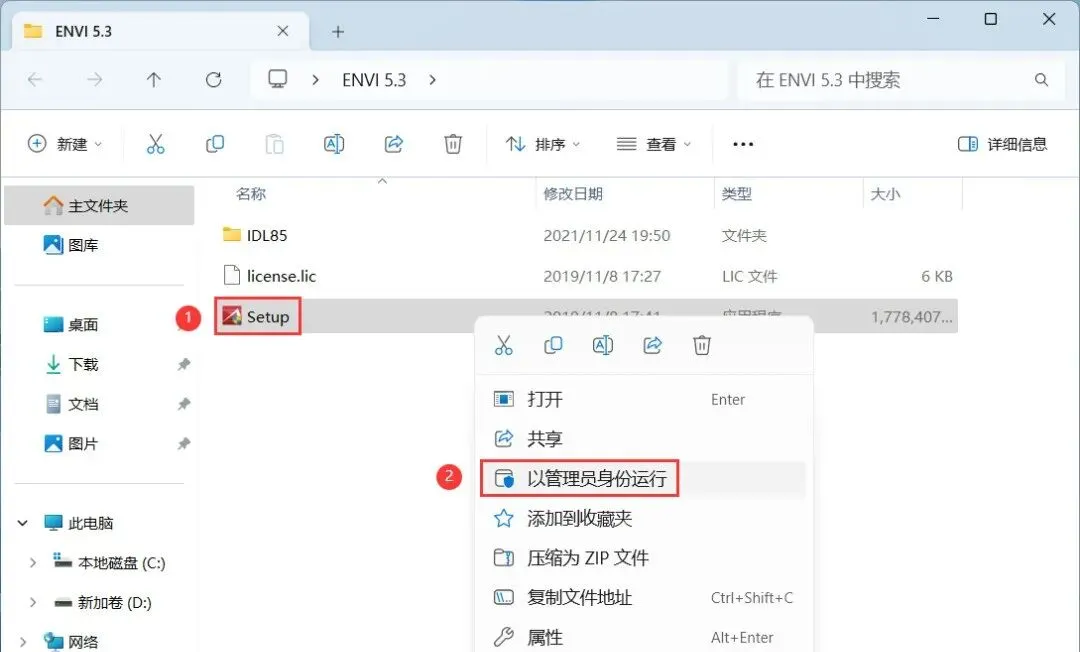 3、找到【Setup】应用程序,右键选择【以管理员身份运行】它