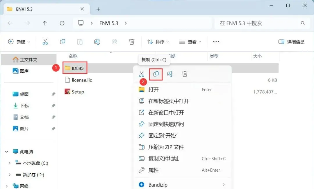 16、回到ENVI 5.3文件夹,找到【IDL85】文件夹,再右键点击【复制按钮】