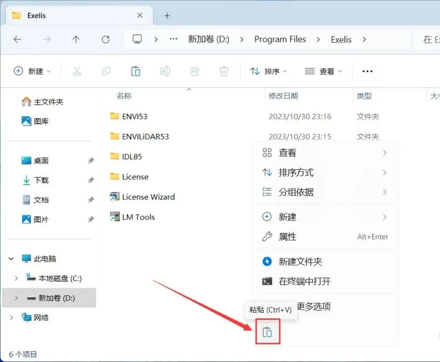 20、右键文件夹的空白处,点击【粘贴按钮】