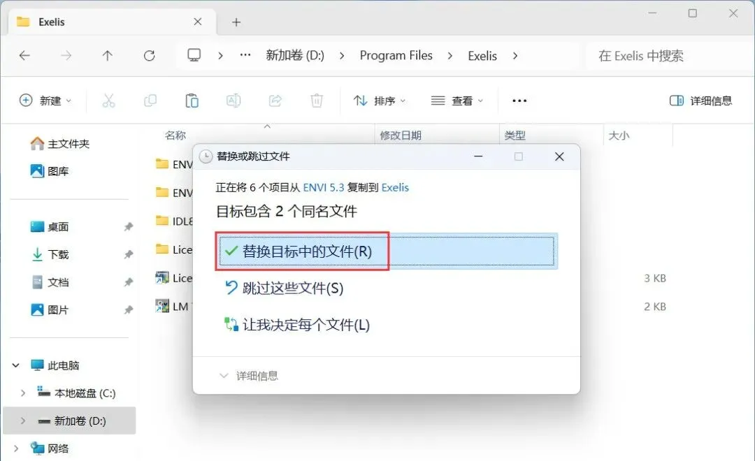 21、点击【替换目标中的文件】