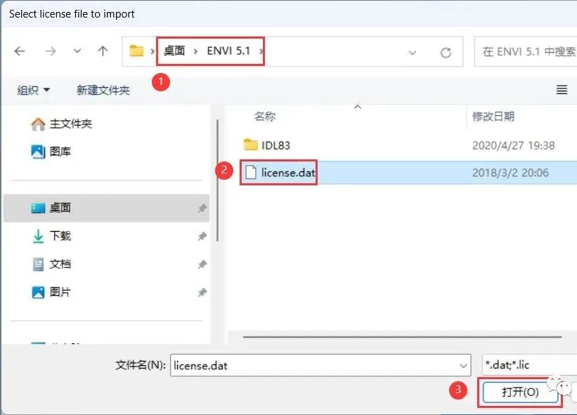 14、选择安装包文件夹的【license.dat】,再点击【打开】