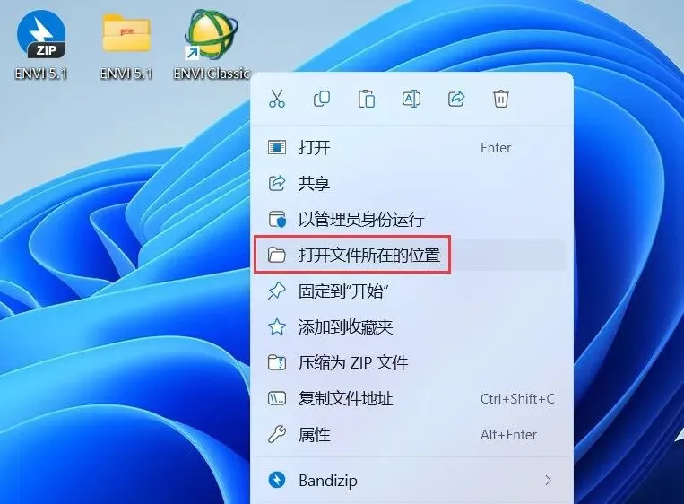 19、右键桌面上的【ENVI Class软件图标】,点击【打开文件所在的位置】
