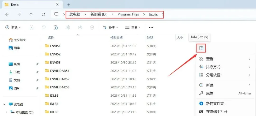 21、右键文件夹的空白处,点击【粘贴按钮】