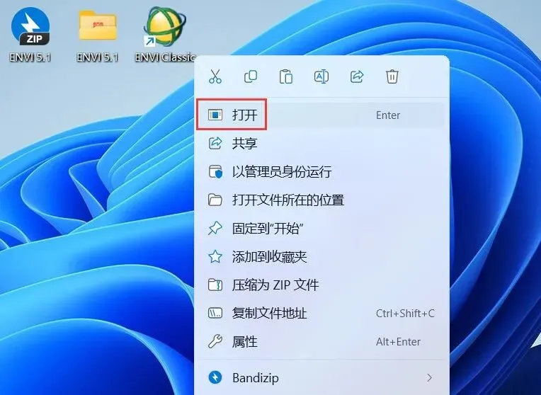 23、回到桌面,右键桌面上的【ENVI Class软件图标】,点击【打开】