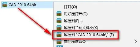 1、右击下载好的安装包,再点击解压到CAD2010 64bit选项。