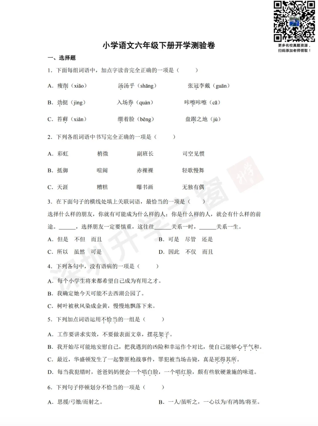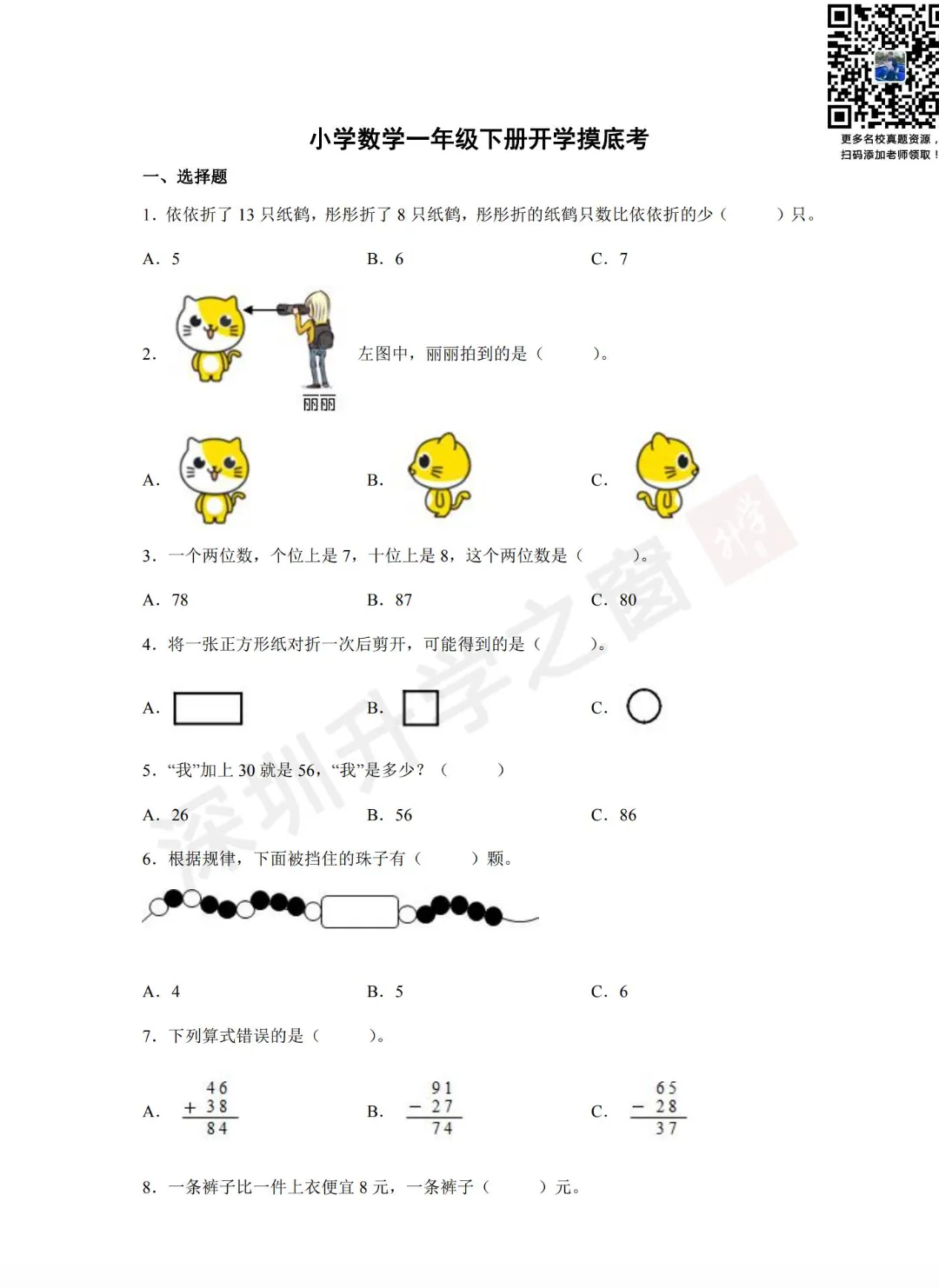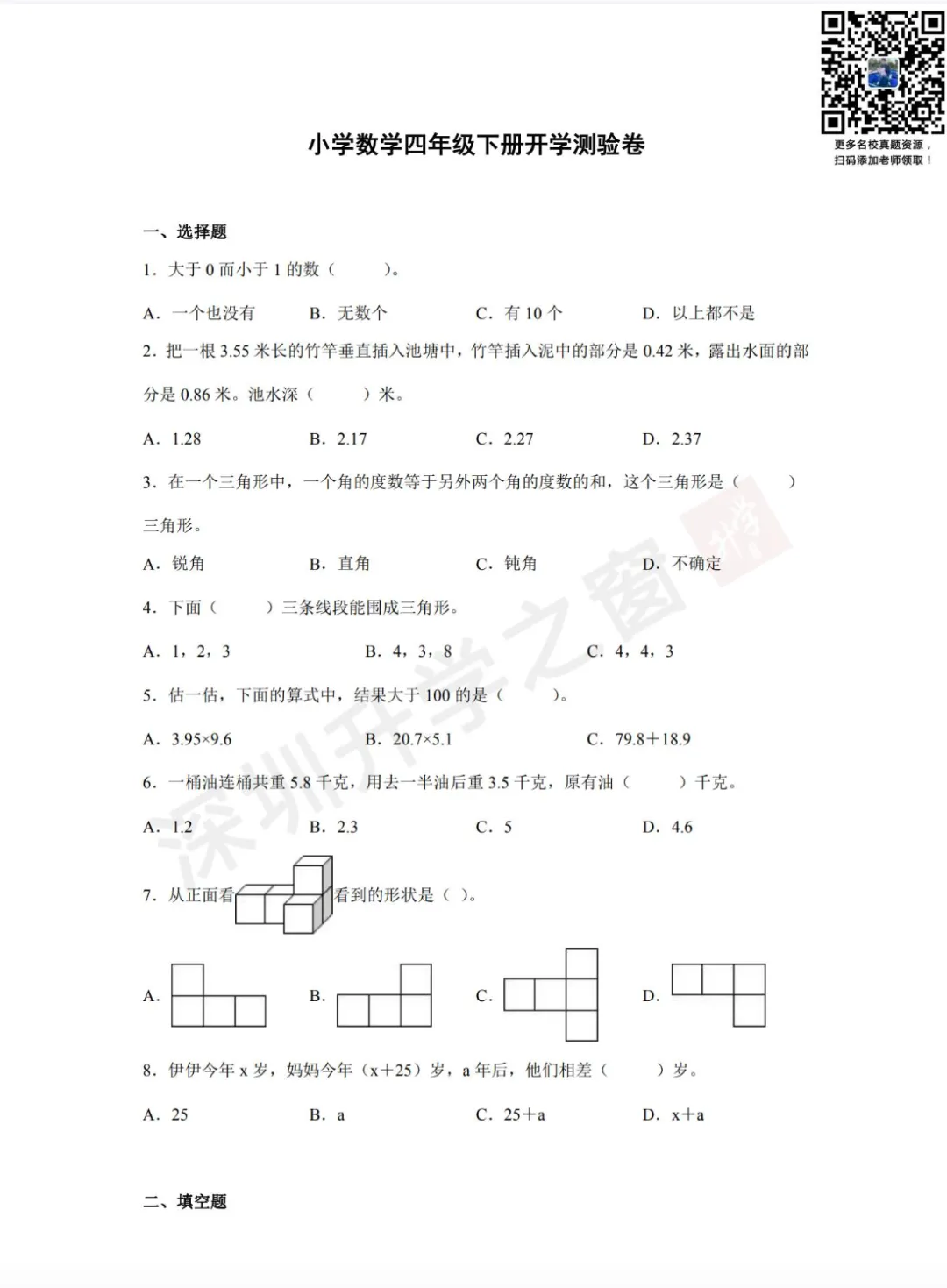 ②公众号对话框回复关键词【开学考】领取真题
