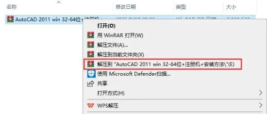 1、右击下载好的AutoCAD2011安装包。选择解压方式。