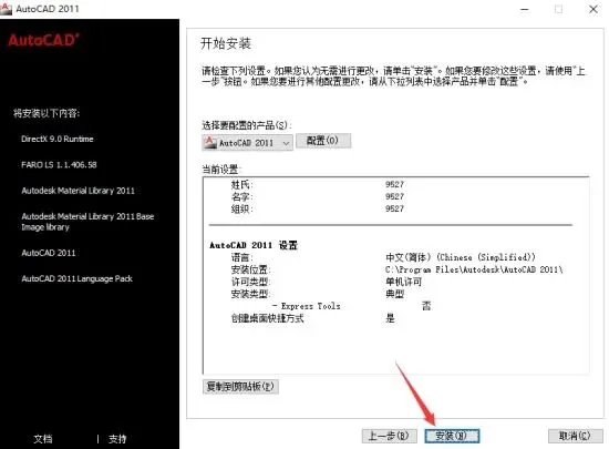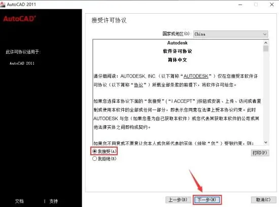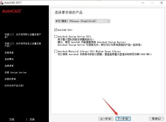 7、勾选AutoCAD 2011,点击【下一步】选项。