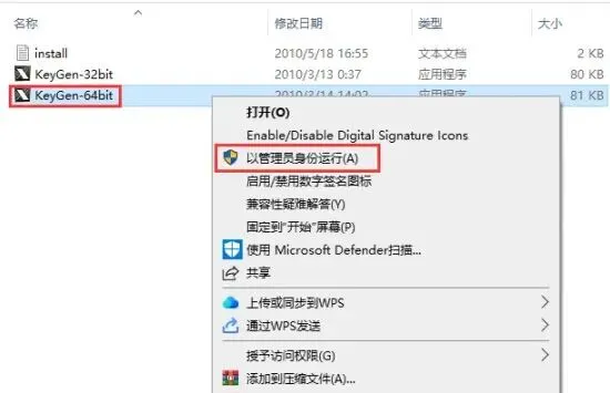 19、右击64位的注册机,点击以管理员身份运行即可。