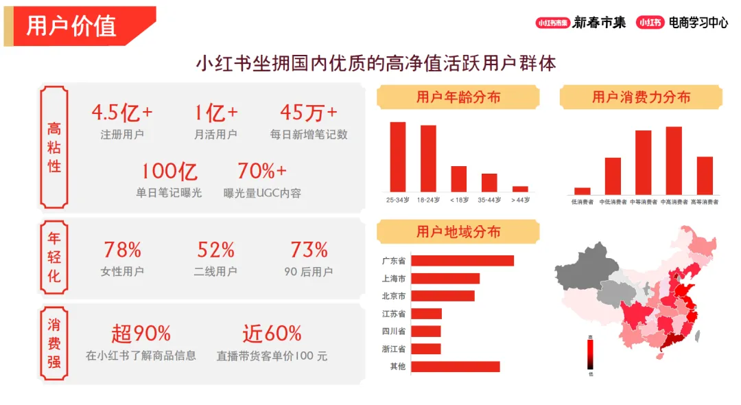 平台坐拥超4.5亿注册用户,月活用户过亿,是高净值年轻女性用户为主的优质社区。