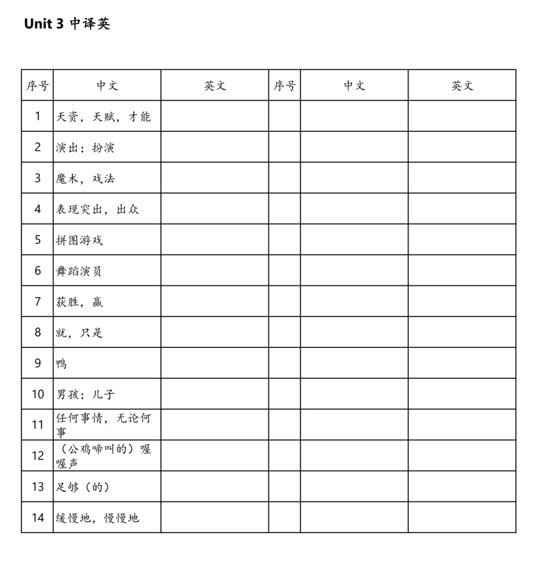 这份资料精心整理了外研版四年级上册的所有核心单词,采用英译汉和汉译英双向对照的模式,非常方便孩子们进行背诵和自我检测。无论是课前预习、课后复习,还是期末冲刺,都能起到事半功倍的效果。