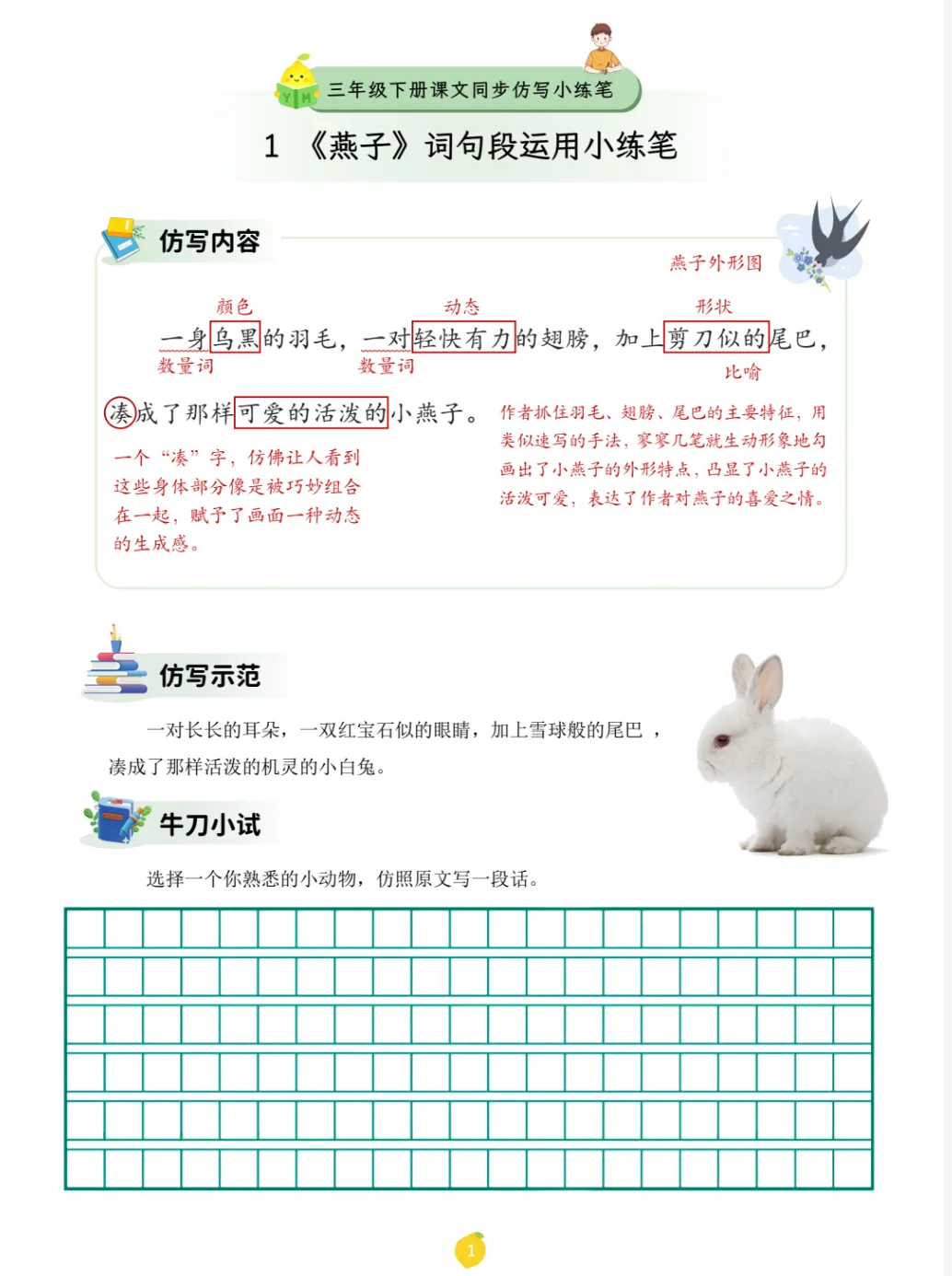 本资料专为小学三年级下学期语文学习设计,覆盖了全册所有课文的仿写练习。每一课都包含精心设计的小练笔题目,并附有详细的解析和优秀范文,让孩子在模仿中学习,在练习中进步。