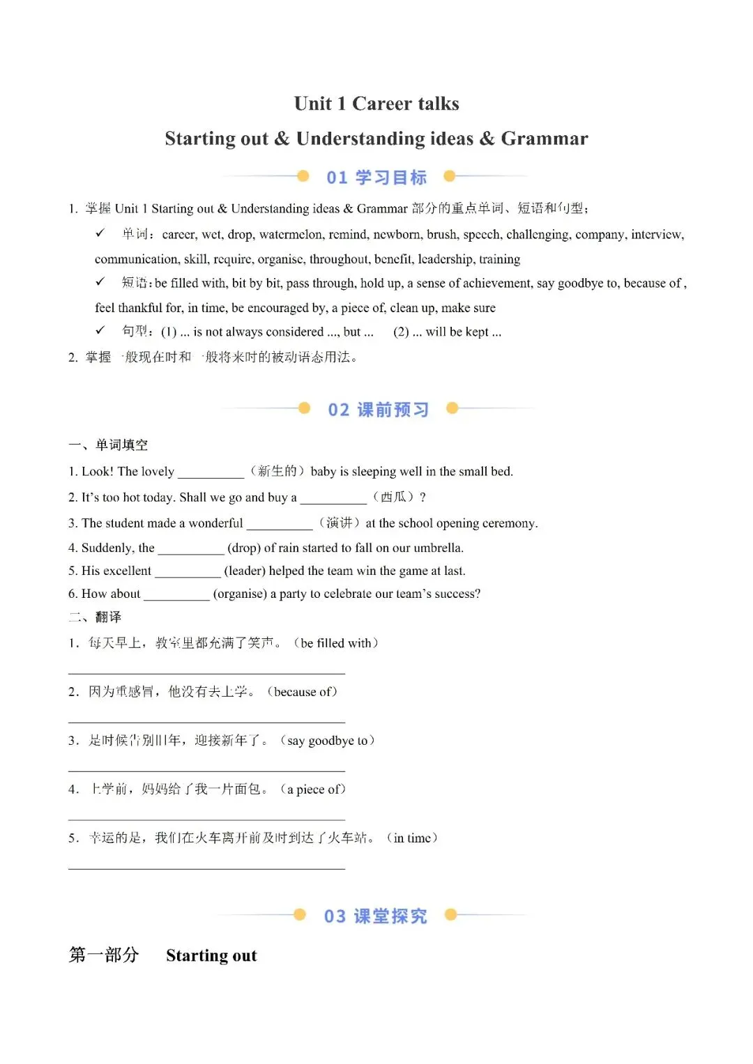 课文翻译单词讲解语法练习