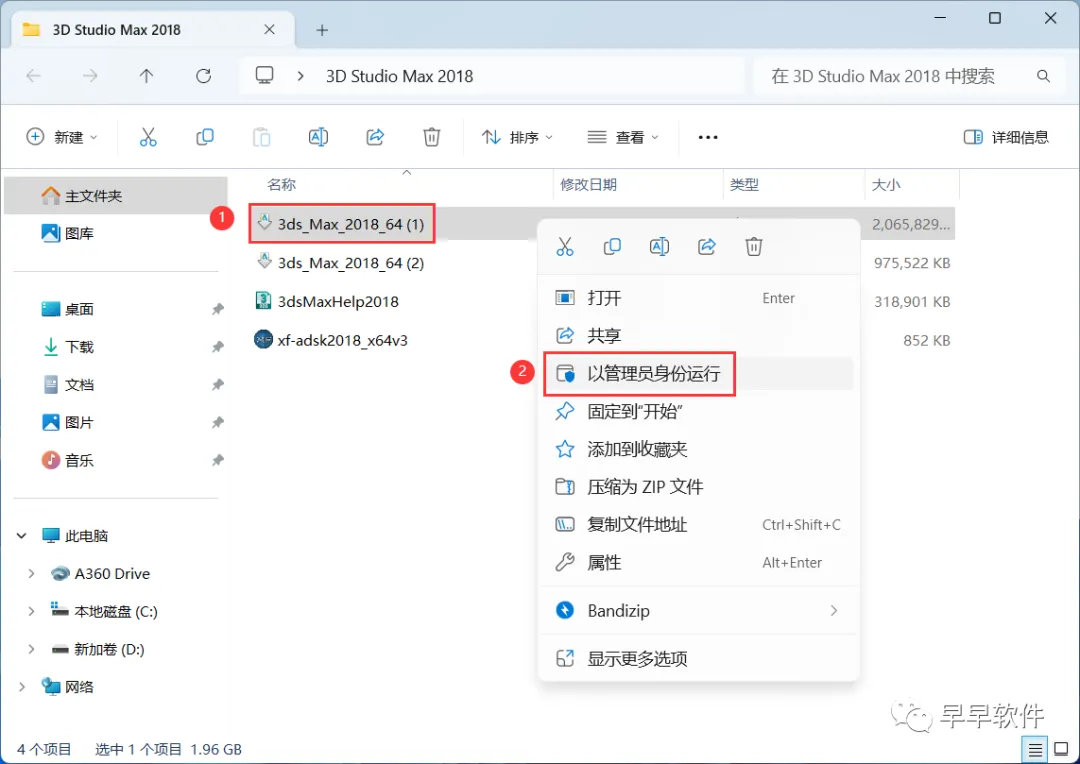 3、找到【3ds_Max_2018(1)】应用程序,右键选择【以管理员身份运行】它