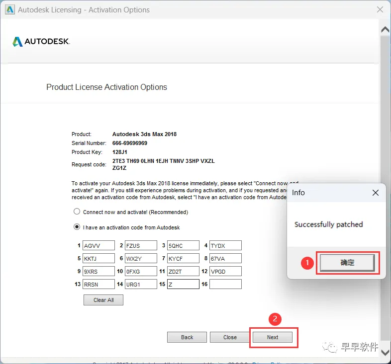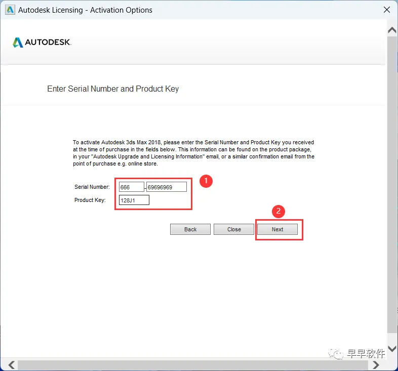 17、Serial Number输入:666-69696969,Product Key输入:128J1,再点击【Next】