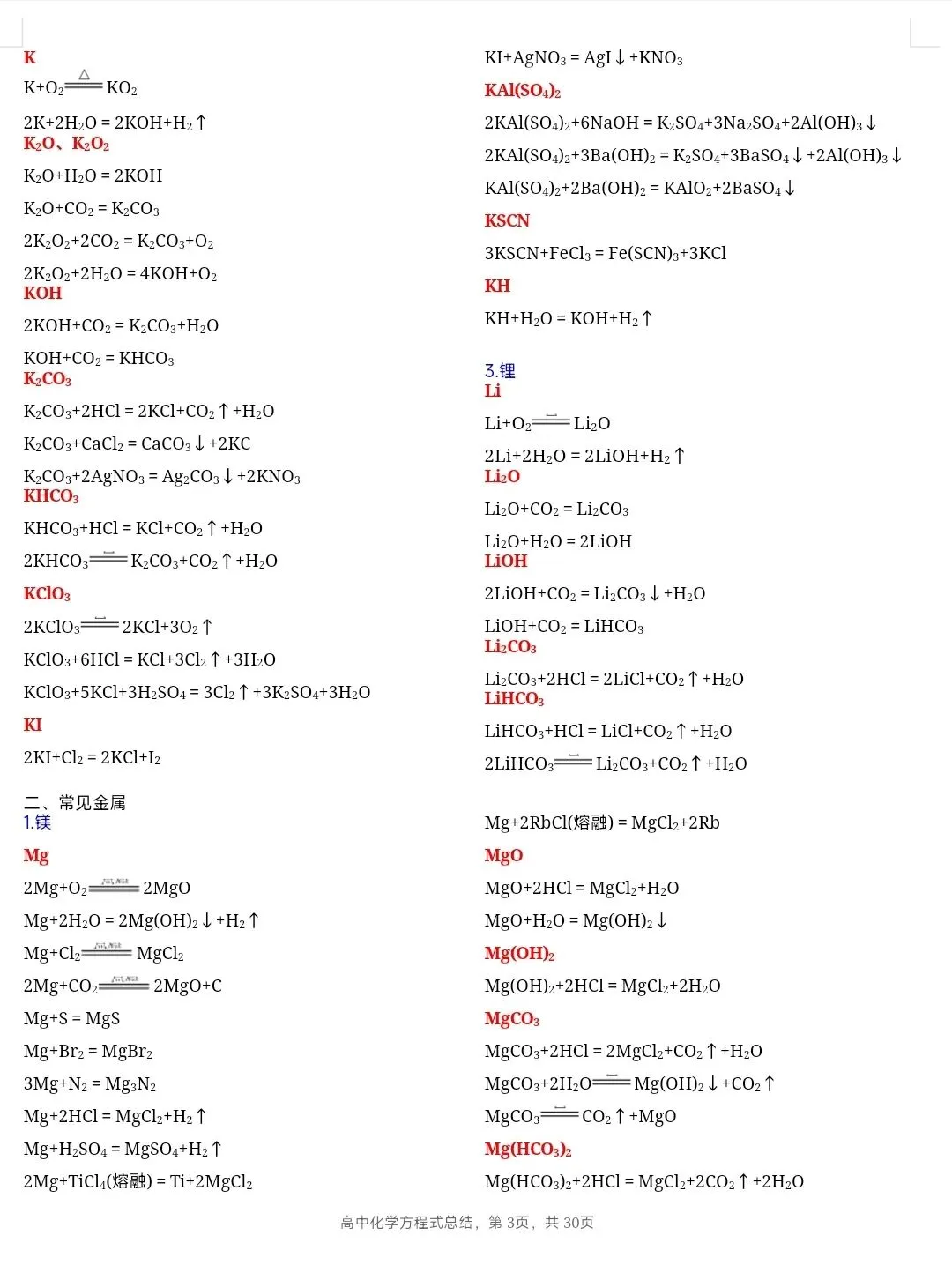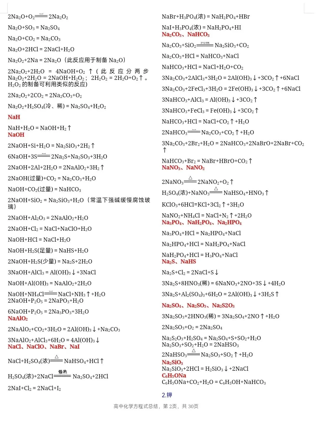 >高中化学方程式总结,30页完整版免费下载.