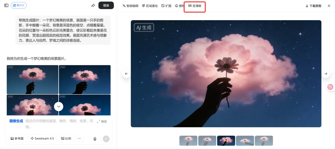 1、打开电脑端的豆包(网页、应用都可以),目前去水印只能用电脑实现。
