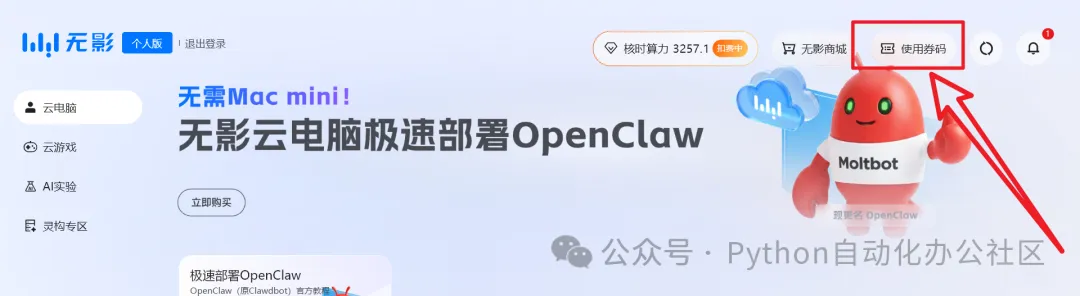 登录后别着急操作,这里有一个小福利,要记得领,后面有用(领一个福利云电脑的资源):