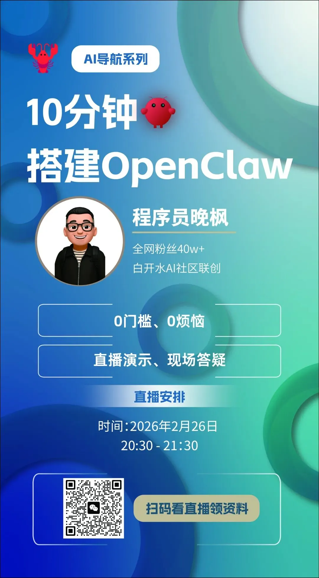 如果群聊二维码过期了 or 满人了,大家可以+我微信:wfdev7,备注:龙虾。我手动邀请你加入直播群。