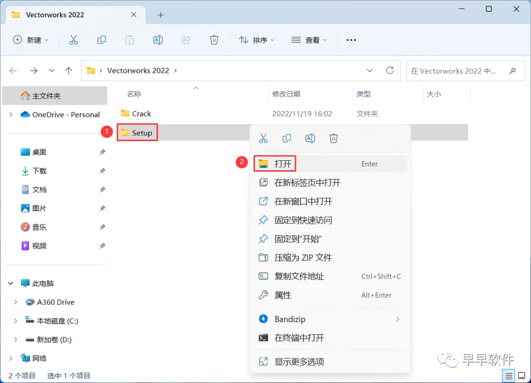 1、下载Vectorworks 2022软件安装包到电脑上,右键选择【解压到Vectorworks 2022\】