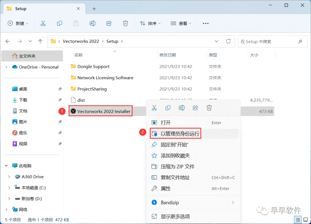 4、找到【Vectorworks 2022 Installer】应用程序,右键选择【以管理员身份运行】它