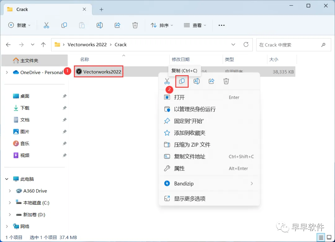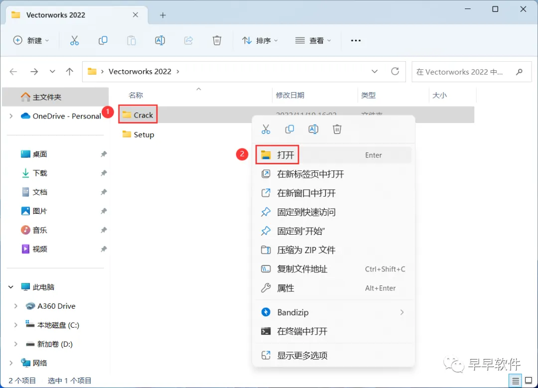 12、回到Vectorworks 2022文件夹,找到【Crack】文件夹,右键【打开】它
