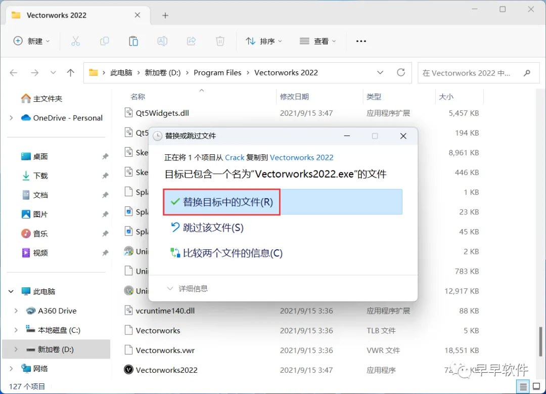 16、点击【替换目标中的文件】