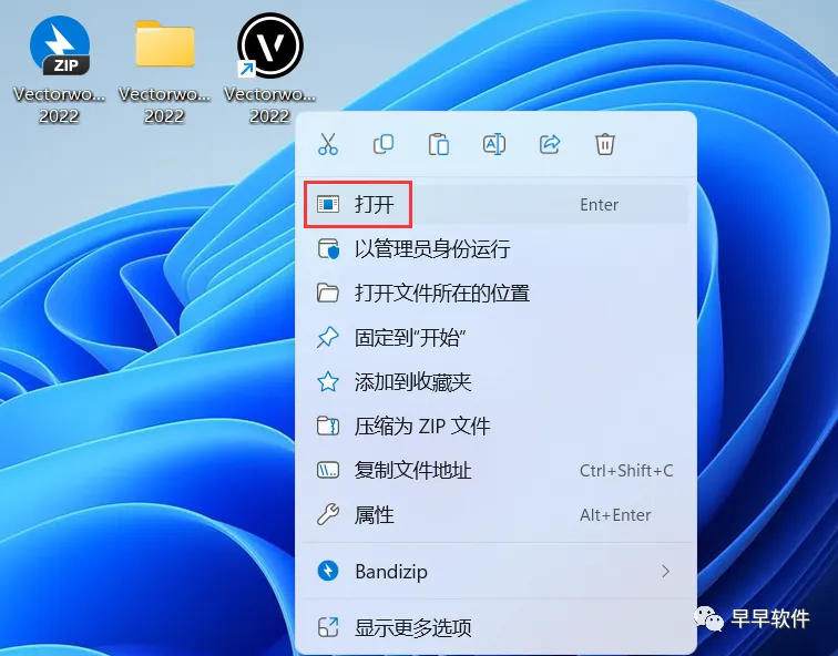 17、回到桌面,右键桌面上的【Vectorworks 2022软件图标】,点击【打开】