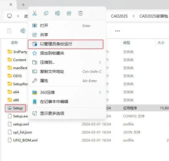 1、打开CAD2025安装包文件夹,找到setup文件。