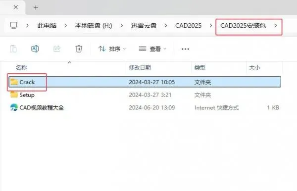 8、返回到CAD2025安装包,然后找到Crack文件夹。