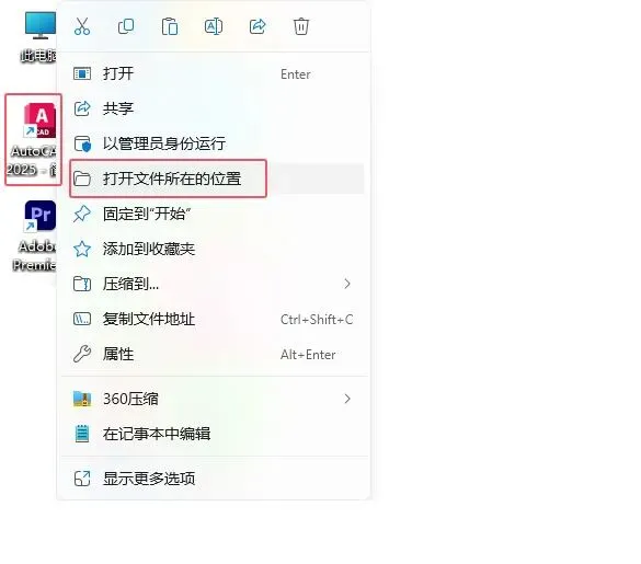 10、然后回到桌面上,找到autoCAD2025图标,右击一下,点击打开文件所在的位置。