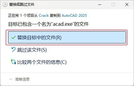 12、弹出替换或跳过文件面板,点击替换目标中的文件。