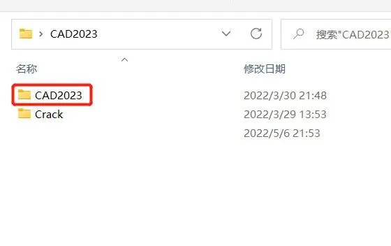 2、进入解压后的CAD2023文件夹选项。