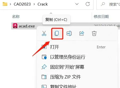 11、然后选中破解文件,点击复制选项。