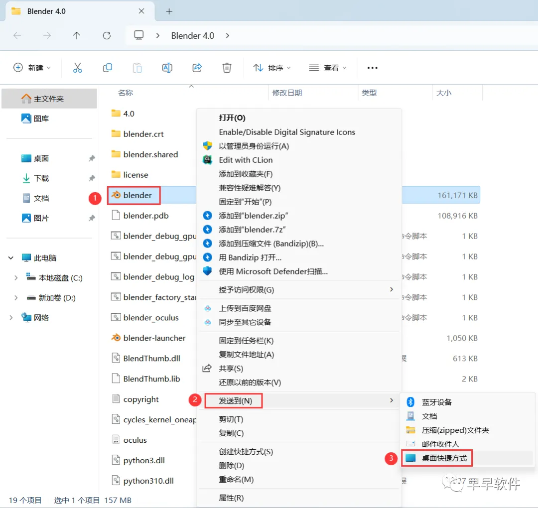 3、找到【blender】程序,右键依次点击【显示更多选项】、【发送到】、【桌面快捷方式】,完成软件桌面快捷方式的创建