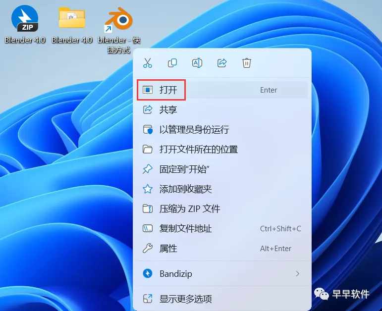 4、回到桌面,右键桌面上的【blender软件图标】,点击【打开】