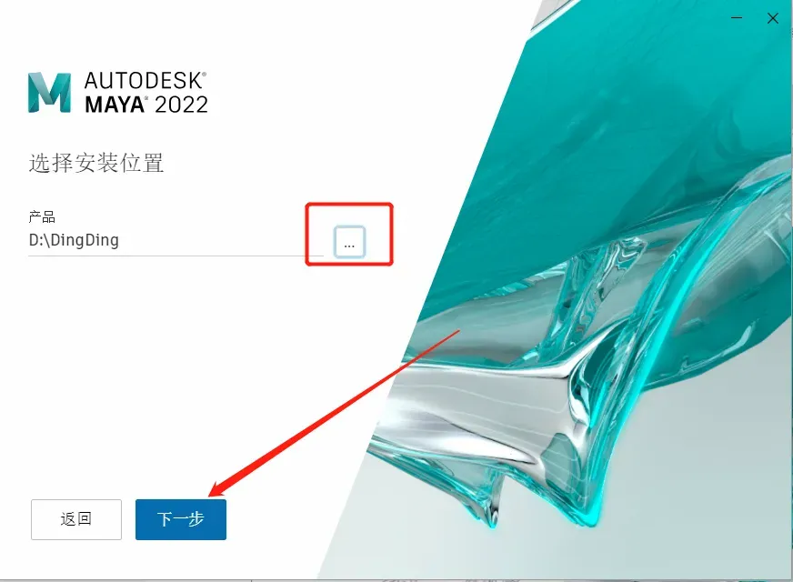 5、点击【浏览】可更改安装位置(建议不要安装在C盘,可以在D盘或其它磁盘下新建一个“MAYA”文件夹,注:安装路径中不要有中文),点击【安装】