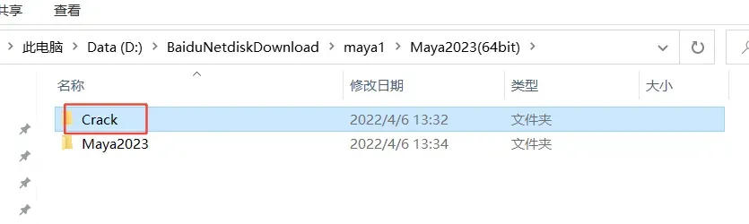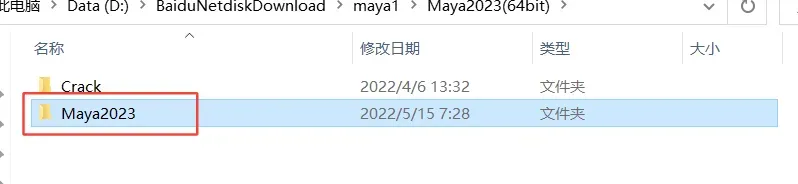 12、打开安装包解压后的【Maya2023(64bit)】文件夹,双击打开【Crack】文件夹