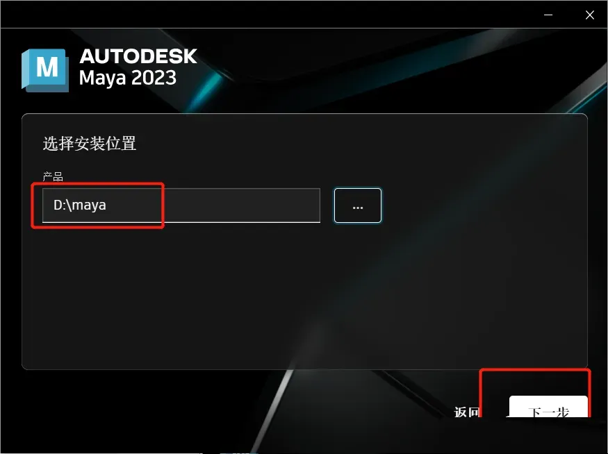 5、点击【浏览】可更改安装位置(建议不要安装在C盘,可以在D盘或其它磁盘下新建一个“MAYA”文件夹,注:安装路径中不要有中文),点击【安装】